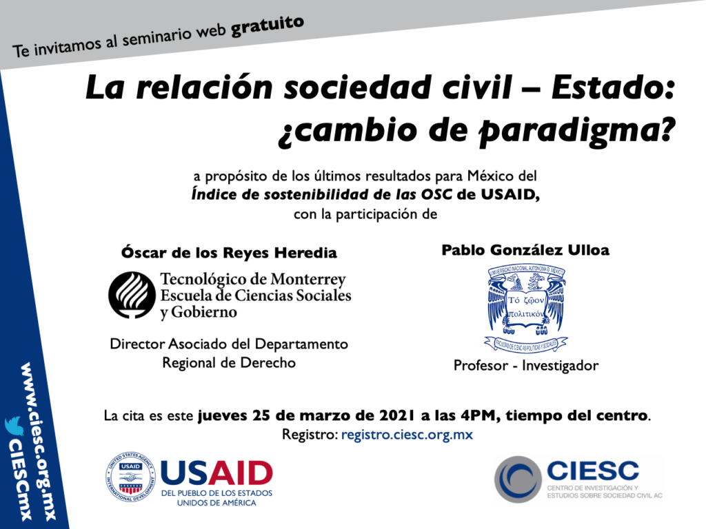 El primer año de la administración de López Obrador trajo consigo un nuevo paradigma en las relaciones gobierno-OSC en México. En febrero de 2019, el primer memorando interno emitido por el nuevo gobierno, que asumió el cargo en diciembre de 2018, formalizó la decisión de recortar todos los fondos federales a las OSC y ordenó que la entrega de cualquier apoyo oficial a la población se llevara a cabo directamente por el propio gobierno federal. La intermediación de las OSC, escribió el presidente, había dado lugar a la asignación discrecional, la opacidad y la corrupción. La sociedad civil reaccionó a la nueva dirección política con gran preocupación por sus efectos tanto en la viabilidad financiera del sector como en la imagen pública. Además, los analistas creen que la exclusión de las OSC de la implementación de programas públicos suprime los procesos sociales que fortalecen orgánicamente las capacidades, crean autonomía, institucionalizan la democracia y producen cohesión social tanto en las comunidades como en las OSC.